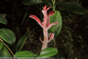 Orsakas av Exobasidium vaccinii (lingonsvulst). En svampart som ger förtjockade eller skedformade blad och även skottspetsar. Ovansidan på bladen blir röda medan undersidan med tiden blir vit av svampen.